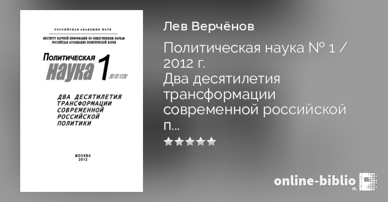 Лев Верчёнов, Политическая наука № 1 / 2012 г. Два десятилетия трансформации современной российской политики — скачать в fb2, txt, epub или pdf