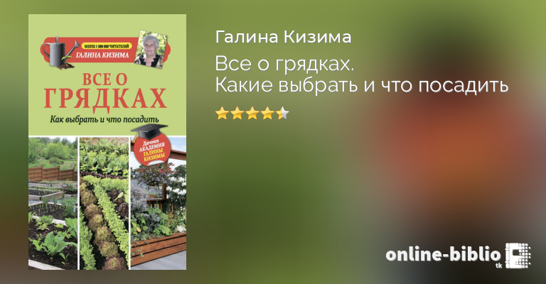 Не все грядки одинаковые, как думают многие. Ведь от их вида зависит не только красота всего вашего участка и урожайность многих овощных культур, но и ваше самочувствие. На одних будет сложно работать даже молодому человеку, на других и пожилой человек сможет без устали ухаживать за растениями. О том, какие грядки бывают и как их соорудить на своем участке, рассказывает Галина Кизима, известный садовод с полувековым стажем. Также автор делится полезными секретами выращивания отличных урожаев при минимальных трудозатратах.