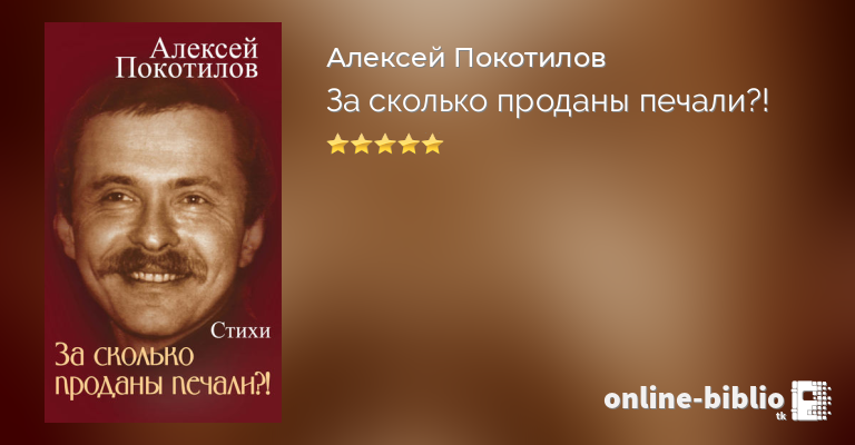 Мудрейшие говорят: когда вы печалитесь, снова вглядитесь в свое сердце, и вы увидите, что воистину вы плачете о том, что было вашей отрадой. Так и с поэзией: она, печалуясь и скорбя часто передает нам то, что достойно радости и что эту самую радость приносило Творцу. Наверное в этом состоит суть новой книги стихов талантливого автора Алексея Покотилова с удивительно ироничным названием «За сколько проданы печали?!»