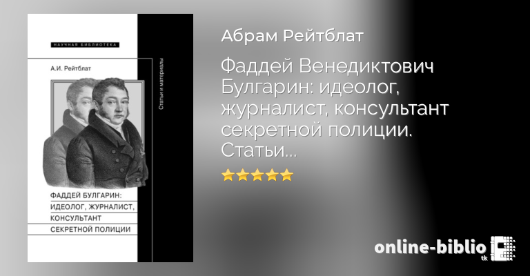 Абрам Рейтблат, Фаддей Венедиктович Булгарин: идеолог, журналист, консультант секретной полиции. Статьи и материалы — скачать в fb2, txt, epub или pdf