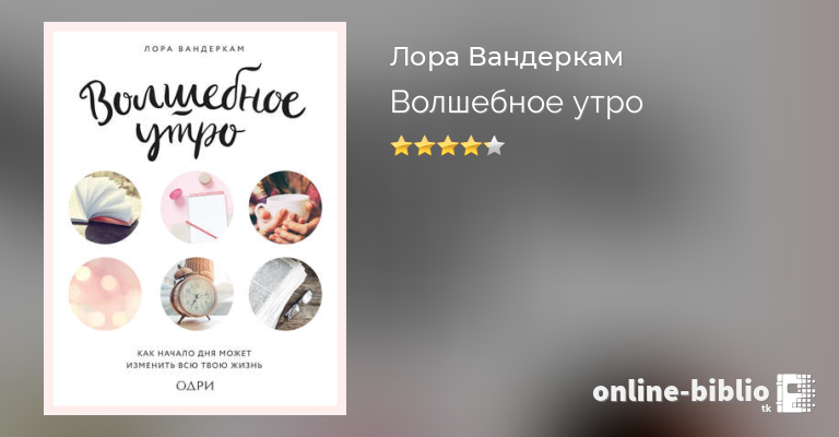 Опираясь на истории из жизни и научные исследования, эксперт по тайм-менеджменту Лора Вандеркам рассказывает, что и как по-настоящему успешные люди делают по утрам для достижения того, что другим кажется невозможным.