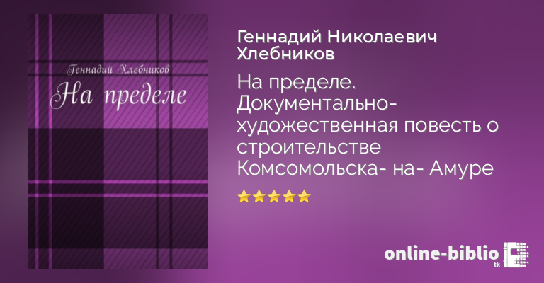 Впервые в свободном доступе для скачивания настоящая книга правды о Комсомольске от советского писателя-пропагандиста Геннадия Хлебникова. «На пределе»! Документально-художественная повесть о Комсомольске в годы войны.