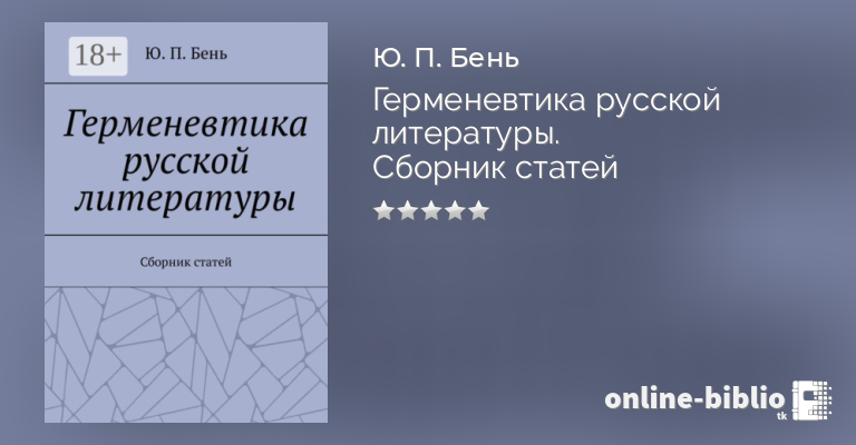 Ю. Бень, Герменевтика русской литературы. Сборник статей — скачать в fb2, txt, epub или pdf