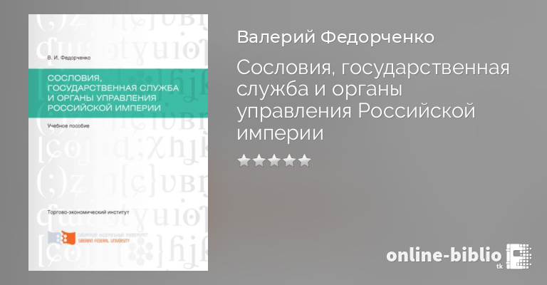 Валерий Федорченко, Сословия, государственная служба и органы управления Российской империи — скачать в fb2, txt, epub или pdf
