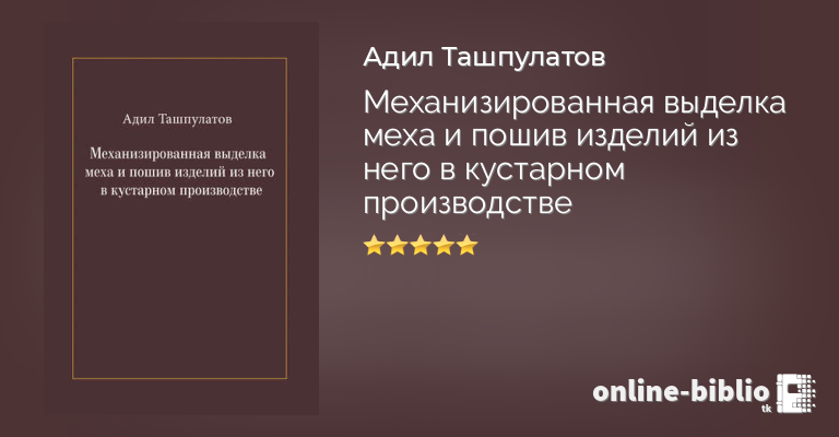 Адил Ташпулатов, Механизированная выделка меха и пошив изделий из него в кустарном производстве — скачать в fb2, txt, epub или pdf