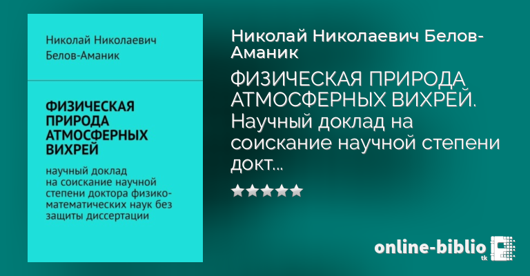 Николай Белов-Аманик, ФИЗИЧЕСКАЯ ПРИРОДА АТМОСФЕРНЫХ ВИХРЕЙ. Научный доклад на соискание научной степени доктора физико-математических наук без защиты диссертации — скачать в fb2, txt, epub или pdf