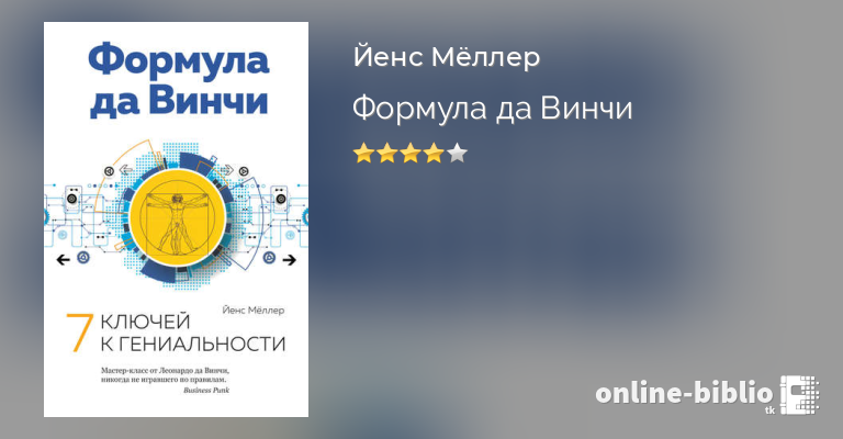 «Леонардо да Винчи еще при жизни стал легендой. Его гениальность казалась непостижимой, однако выдающиеся способности Леонардо были подарком судьбы гораздо в меньшей степени, чем мы привыкли думать. На самом деле такого результата ему удалось достичь благодаря определенным принципам, по которым он целенаправленно выстраивал свою жизнь и работу. В своей книге я представляю семь принципов успеха Леонардо да Винчи и раскрываю истинный секрет неисчерпаемого запаса его новаторских идей, креативности и работоспособности». (Йенс Мёллер)