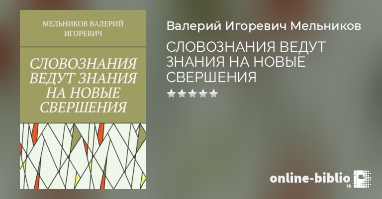 ВАЛЕРИЙ МЕЛЬНИКОВ, СЛОВОЗНАНИЯ ВЕДУТ ЗНАНИЯ НА НОВЫЕ СВЕРШЕНИЯ — скачать в fb2, txt, epub или pdf