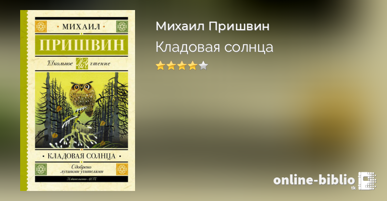 Сказка-быль «Кладовая солнца» (1945) учит читателя понимать, любить и беречь родную природу. В сборник также вошли рассказы М. Пришвина, написанные в разные годы для детей.
