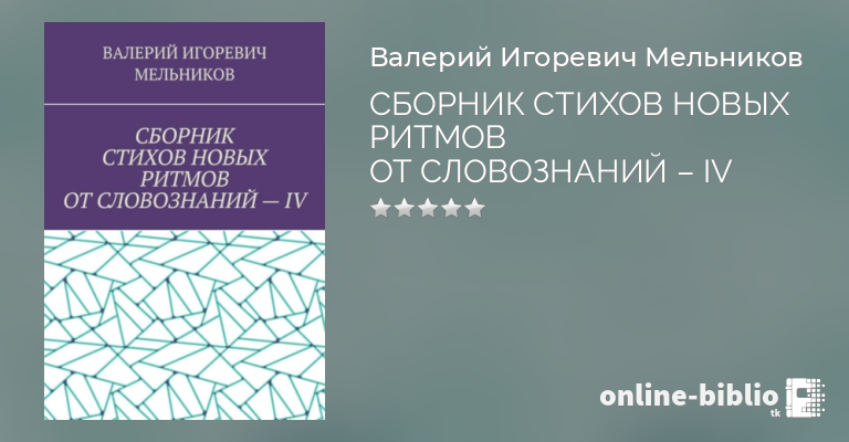 ВАЛЕРИЙ МЕЛЬНИКОВ, СБОРНИК СТИХОВ НОВЫХ РИТМОВ ОТ СЛОВОЗНАНИЙ – IV — скачать в fb2, txt, epub или pdf