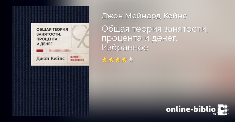 Джон Кейнс, Общая теория занятости, процента и денег. Избранное — скачать в fb2, txt, epub или pdf