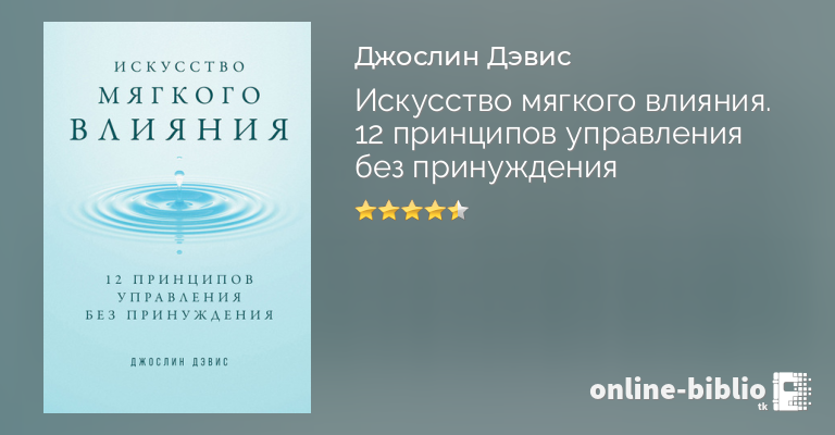 Многие современные руководители считают, что авторитет, основанный на власти, – главный инструмент для достижения целей. Когда сотрудники не выполняют задачи, отстают от графика или проваливают проект, такие лидеры стремятся усилить контроль, быть жестче и требовательнее. Однако злоупотребление силой может привести к отчуждению сотрудников, снижению их мотивации и в итоге к ухудшению результатов. Джослин Дэвис, консультант в сфере корпоративного обучения с 25-летним стажем, разработала и успешно применяет концепцию «мягкого влияния». Она основана на принципах духовных учений и философских школ, дошедших до нас в текстах и высказываниях Будды, Конфуция, Руми, Ганди и других восточных мудрецов. Дэвис подкрепляет эти принципы данными современных исследований, посвященных теме лидерства, мнением экспертов в области влияния и собственным опытом. Какую бы позицию вы ни занимали в корпоративном мире, эта книга поможет вам развивать гибкость и объединять людей, чтобы достигать бизнес-целей без принуждения.