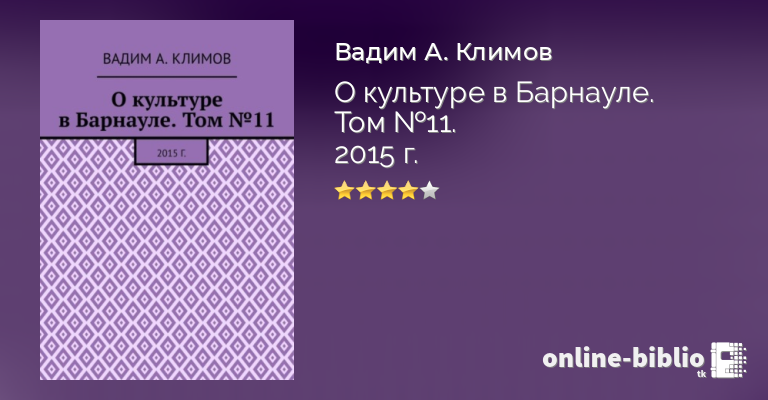 Вадим Климов, О культуре в Барнауле. Том №11. 2015 г. — скачать в fb2, txt, epub или pdf