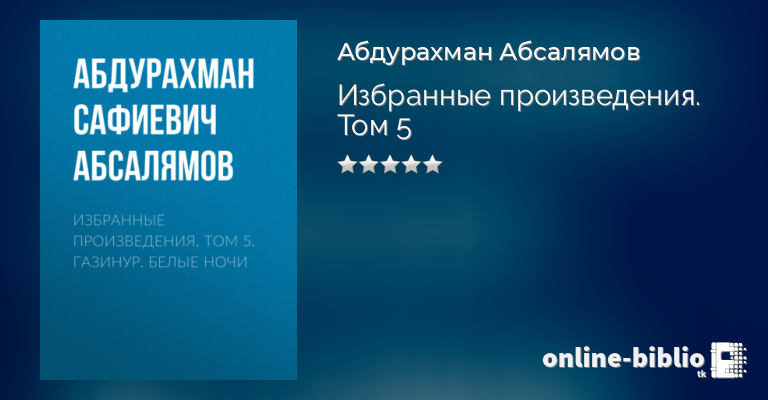 В пятый том избранных произведений классика татарской литературы, лауреата Государственной премии Республики Татарстан имени Г. Тукая Абдурахмана Абсалямова (1911–1979) вошли роман «Газинур» и повесть «Белые ночи».