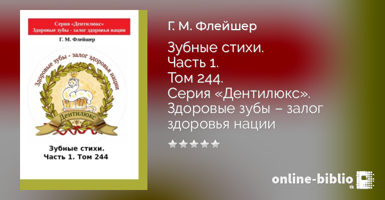 Г. Флейшер, Зубные стихи. Часть 1. Том 244. Серия «Дентилюкс». Здоровые зубы – залог здоровья нации — скачать в fb2, txt, epub или pdf