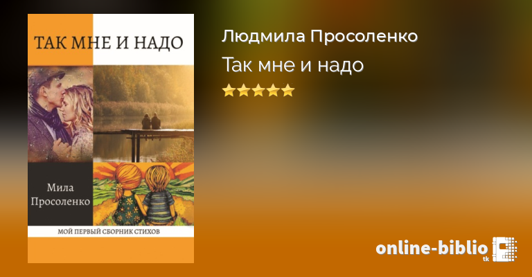 Сборник Милы Просоленко «Так мне и надо» включает часть стихотворений, созданных за 20 лет. В него вошли стихи любовной и пейзажной лирики, которые посвящены малой родине, психологии детско-родительских отношений и, конечно, теме дружбы. Автор затрагивает и философские темы, рассуждая о жизни и смерти, о быстротечности времени. Её искренность, доверительный тон и простота создают гармоничность её общения с будущими читателями.