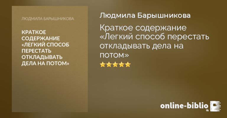 Людмила Барышникова, Краткое содержание «Легкий способ перестать откладывать дела на потом» — скачать в fb2, txt, epub или pdf