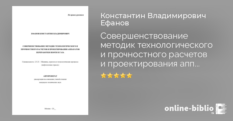 Константин Ефанов, Совершенствование методик технологического и прочностного расчетов и проектирования аппаратов переработки нефти и газа. Рукопись незаконченного автореферата — скачать в fb2, txt, epub или pdf