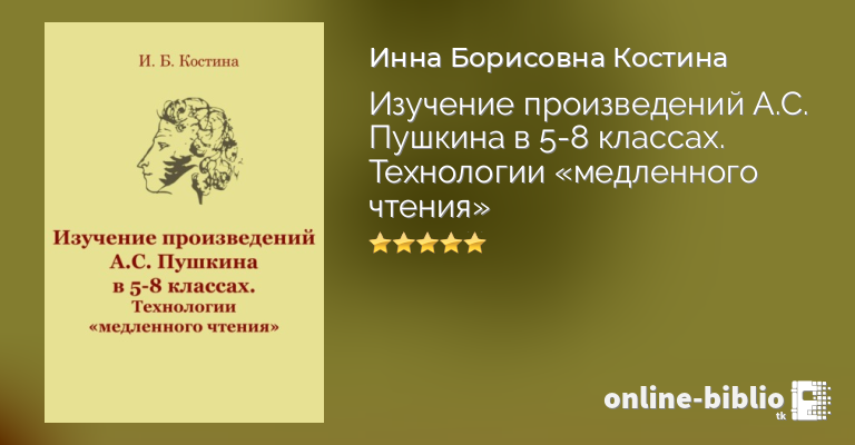 Инна Костина, Изучение произведений А.С. Пушкина в 5-8 классах. Технологии «медленного чтения» — скачать в fb2, txt, epub или pdf