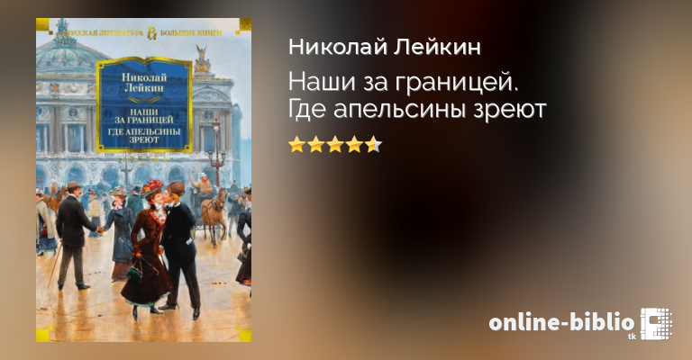 Николай Александрович Лейкин – в свое время известный петербургский писатель-юморист, журналист, издатель. Его популярность была колоссальной: «эпохой Александра III и писателя Лейкина» назвал конец XIX века поэт А. Блок. А. П. Чехов считал Лейкина своим «крестным батькой»: с начала 1880-х годов Лейкин издавал собственный журнал – юмористический еженедельник «Осколки», к сотрудничеству в котором привлек молодого Антона Чехова, раскрыв его талант. Книга «Наши за границей» – одна из самых известных в творчестве Лейкина. Это веселое повествование о поездке купца Николая Ивановича Иванова и его жены Глафиры Семеновны во Францию – на знаменитую Всемирную выставку в Париже. Книга настолько понравилась читателям (только при жизни автора она выдержала 24 издания!), что Лейкин написал продолжение – «Где апельсины зреют», в котором купеческая чета решает побывать на Французской Ривьере и в Италии. Лейкинский мягкий юмор по отношению к соотечественникам, отправившимся мир посмотреть и себя показать, и сегодня не утратил актуальности.