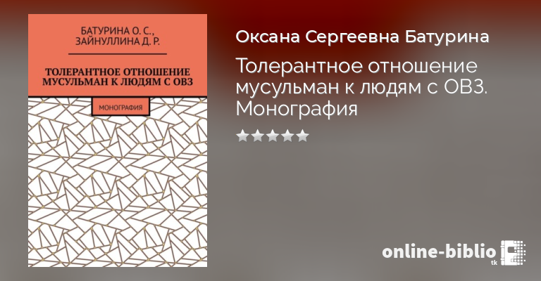 Оксана Батурина, Динара Зайнуллина, Толерантное отношение мусульман к людям с ОВЗ. Монография — скачать в fb2, txt, epub или pdf