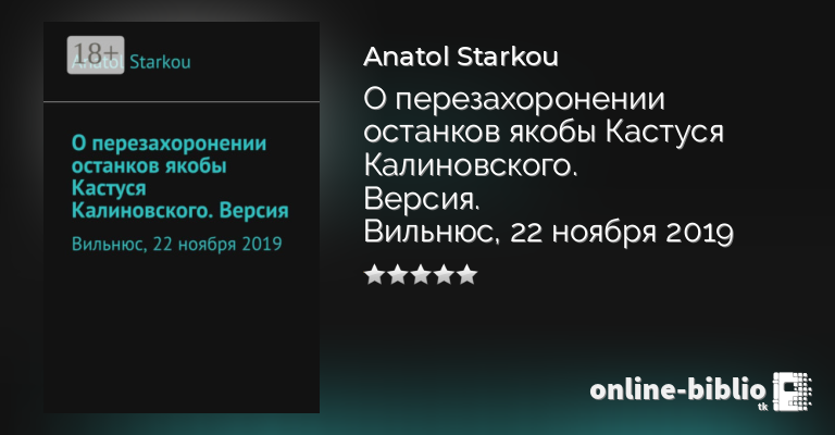 Anatol Starkou, О перезахоронении останков якобы Кастуся Калиновского. Версия. Вильнюс, 22 ноября 2019 — скачать в fb2, txt, epub или pdf