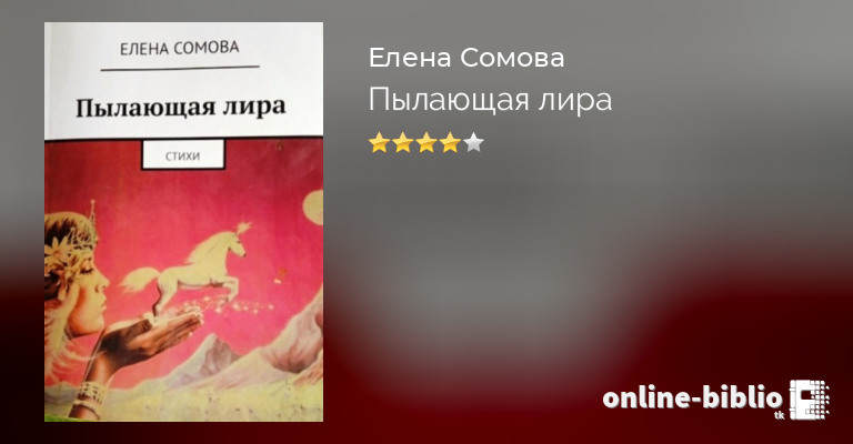 Книга «Пылающая лира» Елены Сомовой целиком построена на эмоциях, в ней жизнь души и свирепость абсурда мироустройства выражены в поэтических произведениях. Стихи «Пылающей лиры» уносят читательский взгляд далеко за пределы быта, в мир воплощений в слове эмоций, порой отрицающих привычную логику бытия, но основа всему в поэзии – человек и его стучащее любовью сердце, принимающее импульсы жизни.