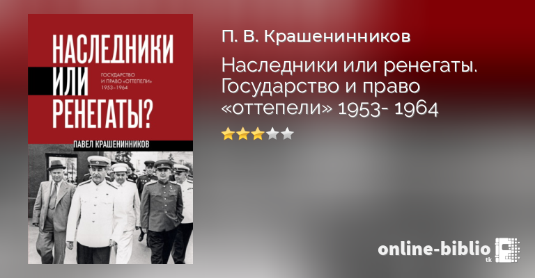 Павел Крашенинников, Наследники или ренегаты. Государство и право «оттепели» 1953-1964 — скачать в fb2, txt, epub или pdf