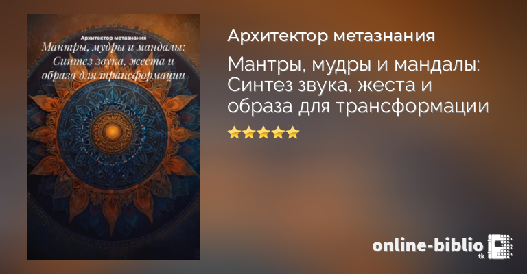Практическое руководство по использованию мантр, мудр и мандал для личной трансформации. Содержит четкие инструкции: как сформулировать намерение и создать свою мантру, как выполнять 5 ключевых мудр (Гьяна, Шуни, Абхая, Кубера, Намасте) и понимать их значение, как рисовать личные мандалы и медитировать на них. Уникальность мануала – в подробной методике синтеза этих практик: одновременном использовании звука, жеста и образа для максимального эффекта. Включает важные принципы безопасности и регулярности.